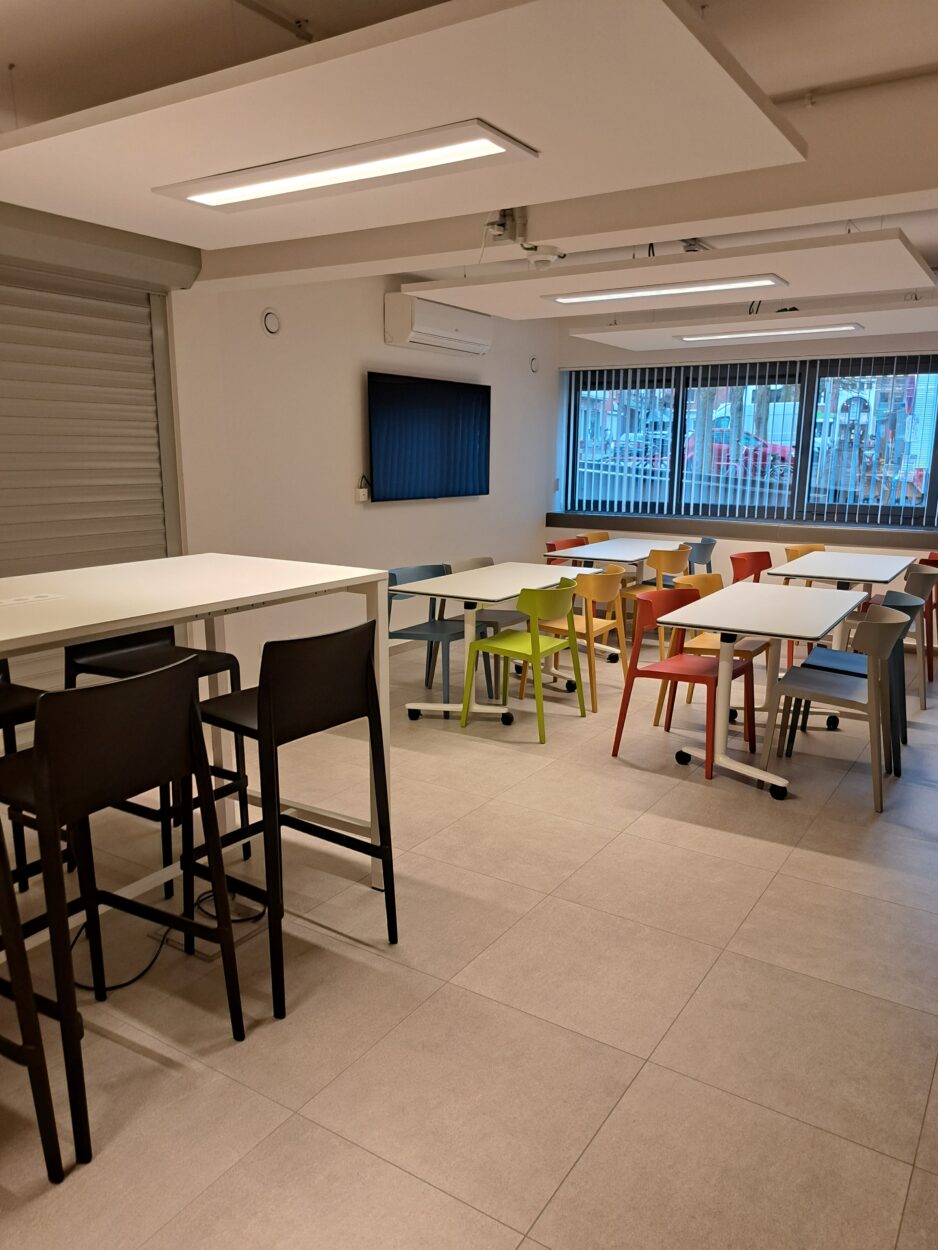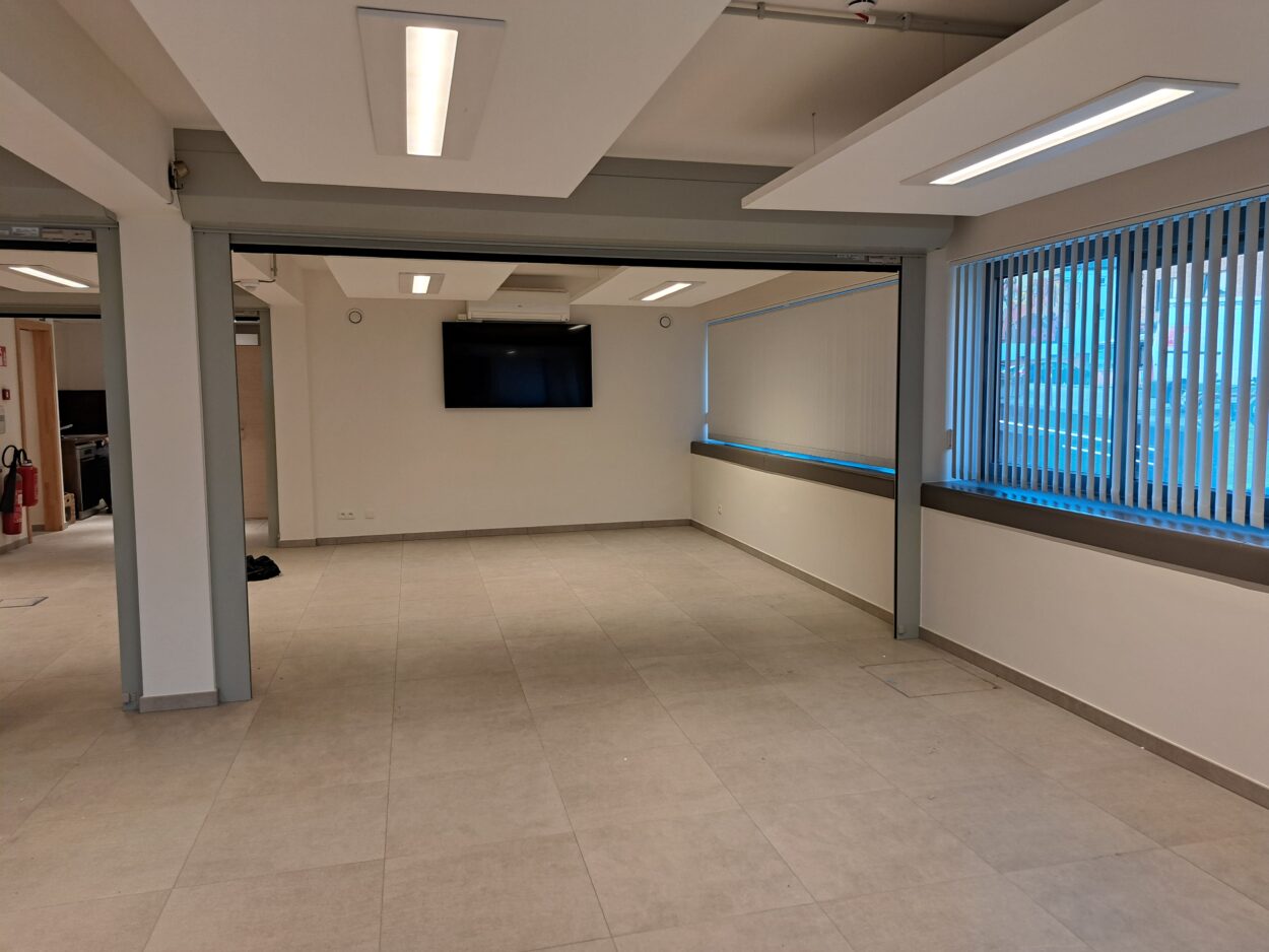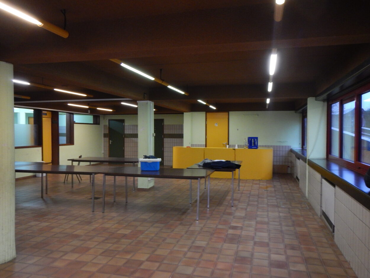 Cette salle multifonctions, destinée à accueillir à la fois le réfectoire des agents communaux mais aussi des salle(s) de réunions, a subi un réaménagement complet afin d’être plus adaptée à cette double utilisation souhaitée.