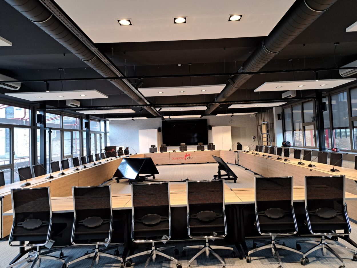 Grâce aux travaux entrepris, cette salle est désormais parfaitement équipée pour répondre aux enjeux actuels en matière de communication. Des équipements de pointe tels que des caméras, des systèmes vidéo et sonores ont été intégrés, permettant ainsi d’assurer des retransmissions de qualité et de faciliter la diffusion de contenu lors des événements.