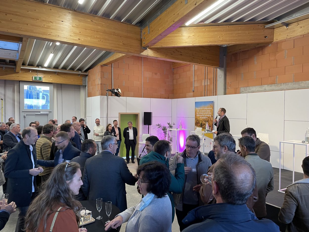 En effet, l’objectif de cette réalisation est de démontrer que la construction en bois-paille est tout à fait réaliste, que ce soit d’un point de vue pratique ou économique, et que son procédé répond entièrement aux objectifs environnementaux de notre époque. La promotion de la paille comme matériau de construction s’inscrit dans le cadre du projet européen Interreg Up Straw, lancé en 2017. L’Europe prend en charge 60% du coût de l’opération (840.000 €), la Région Wallonne 30 % et le Cluster 10 %.