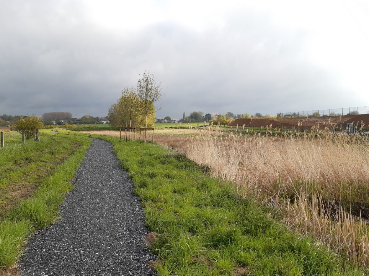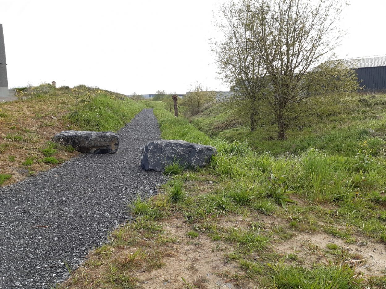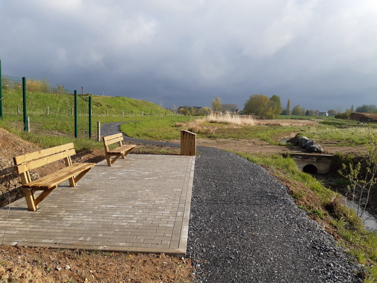 Concrètement, un cheminement piéton d’un kilomètre de long a été aménagé en bordure de ruisseau, muni de bancs et de panneaux d’informations, à destination, notamment, des travailleurs du parc.  En outre, les abords du cours d’eau ont été verdurisés par la plantation d’essences indigènes.