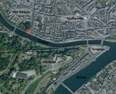 Implanté sur les quais de la Sambre, en plein centre-ville namurois, il est à proximité directe de la rue des Brasseurs et de l’Evêché de Namur, tous deux marqués par une protection patrimoniale. Il offre une vue exceptionnelle sur la citadelle de Namur et ses flancs boisés.