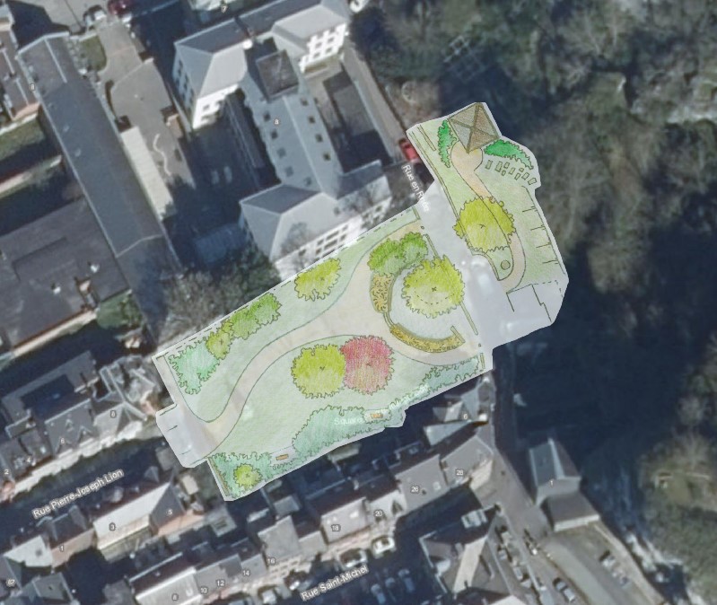 Dinant pour le square Lion en centre-ville :Projet maillage vert et bleu de Dinant
